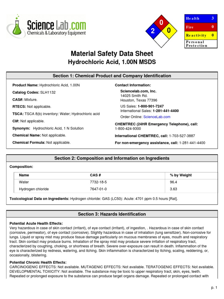 8n Hydrochloric Acid Safety Data Sheet Fill Online Printable Fillable Blank Pdffiller