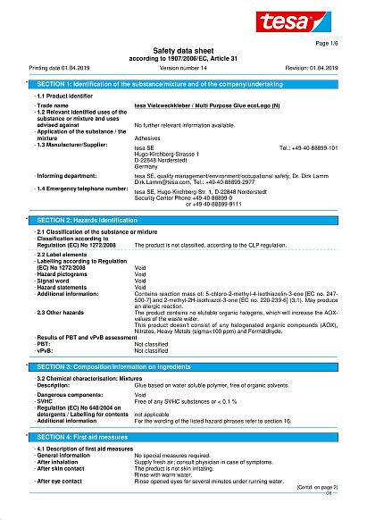Safety Data Sheets For Tesa Products Sds Download Tesa